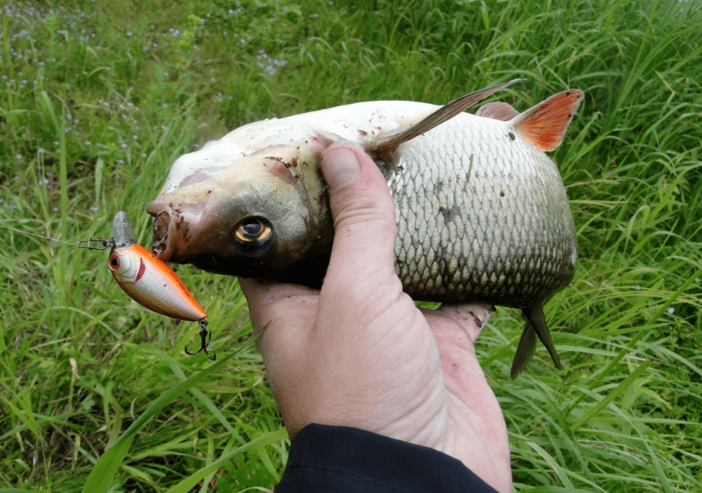 Получается, что он атакует откуда-то снизу и бьет именно в центр приманки. Кстати, часто вытащенные язи вообще засекаются снаружи — получается, что они не пытаются съесть воблер, а просто его бодают??? Видя в нем некоего конкурента? Не знаю!
