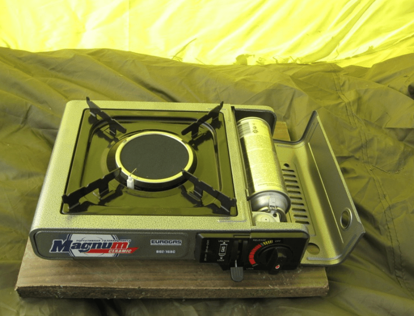 Для того, чтобы не случился пожар в палатке, особенно небольшой и тесной, лучше всего в качестве источника тепла и обогревателя использовать газовую плитку с керамической конфоркой, которая работает без открытого огня, при этом греет жильё и готовит пищу нисколько не хуже, чем обычные плитки с открытым огнём.