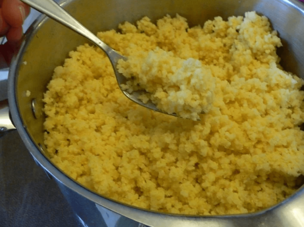 - Отваренное пшено, в пропорциях 700 грамм на литр воды, варить в течение 10 минут, дать остыть, поместить в отдельную емкость.