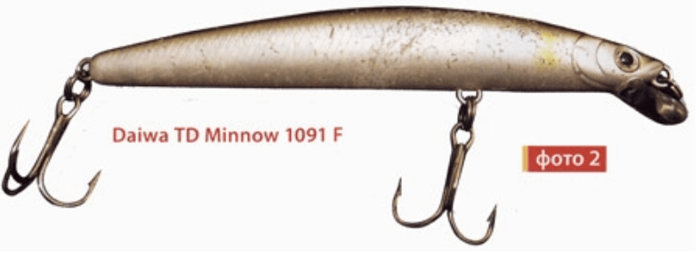 2. Daiwa TD Minnow 1091, версия F (95 мм — 7 г, фото 2). Мировая классика. Один из лучших воблеров-минноу, и так считают очень многие. Несмотря на небольшой размер и массу, обладает прекрасной дальностью и точностью заброса, невзирая на разные неблагоприятные обстоятельства — настолько хороша в этой модели система перемещения массы.