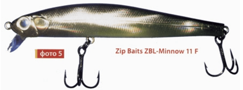 2. Zip Baits ZBL-Minnow 11 F (110 м -14,4 г, фото 5). Система Mag-Drive — и с забросом без лишних уточнений все становится понятно. Даже на короткой равномерной потяжке обладает (как и TD Minnow от Daiwa), легкой малоамплитудной «игрой», только частота ее еще выше. Если щука в духе, то в большинстве случаев после приводнения приманки легким движением руки рыба превращается… Дальше вы в курсе.