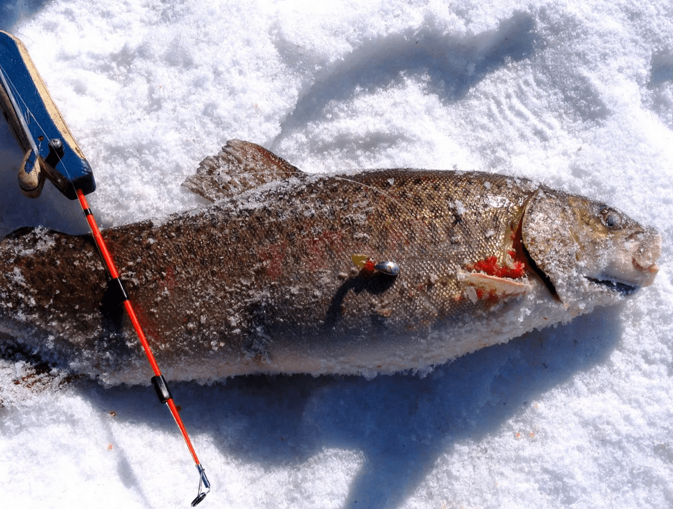 Наилучшей наживкой при зимней ловле ленка считается заготовленный с осени червь. В качестве дополнительной приманки можно к цевью крючка привязать небольшой кусочек ярко-красной нити. Этот цвет рыба увидит на большом расстоянии.