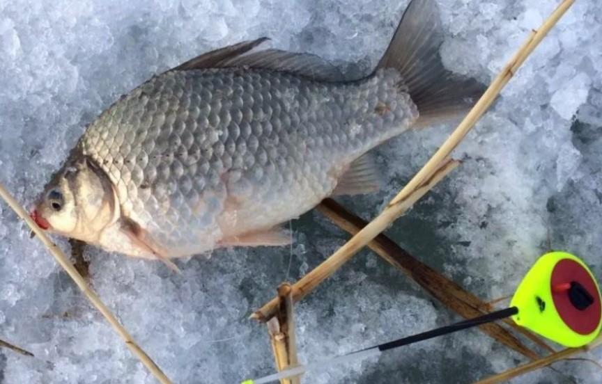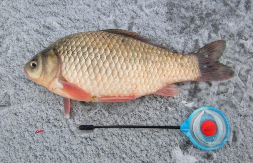 — Как говорилось ранее, карася зимой можно ловить и на снасти аналогичные летним. Так например можно сделать зимнюю удочку с небольшим поплавком грузиком и крючком с наживкой. Тогда необходимо опустить приманку на дно и ждать поклевки.