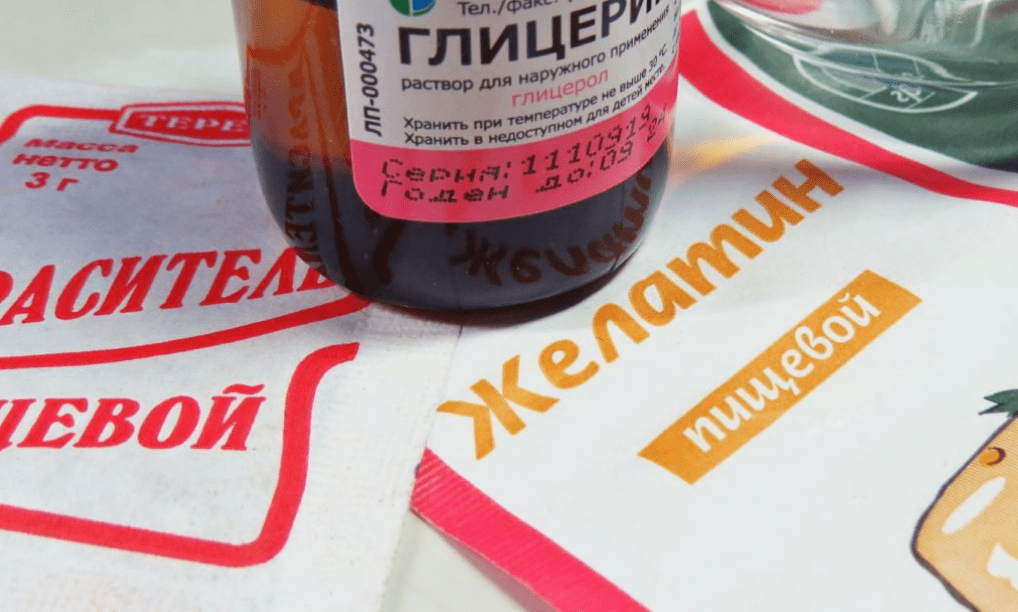 Это поможет желатину разойтись, а если смесь получается слишком густой, можно добавить еще 5-10 мл жидкого глицерина (или теплой воды).
