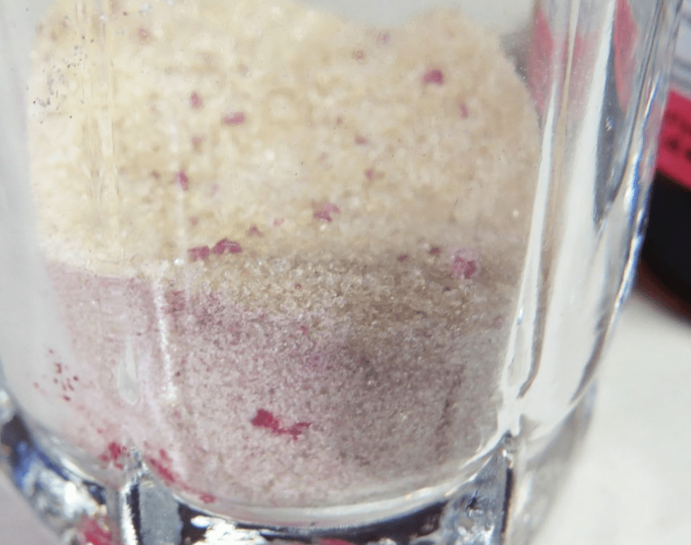 - Берем 10 г желатина, высыпаем в стакан, и сразу смешиваем его с сухими составляющими (краситель, ароматизатор);