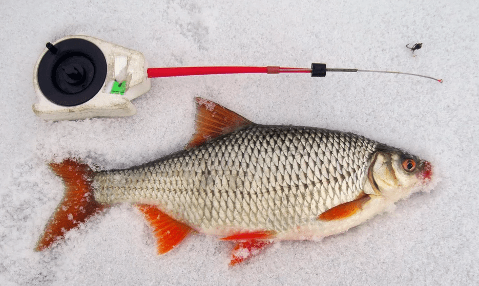 Лучше всего красноперку ловить в ясную погоду, однако, стоит учесть глубину, на которой проходит рыбалка. Если она не превышает метра, то рыба может ипугаться тени рыболова, сидящего на льду. В этом случае нужно искать места, покрытые снегом и вести себя тихо.