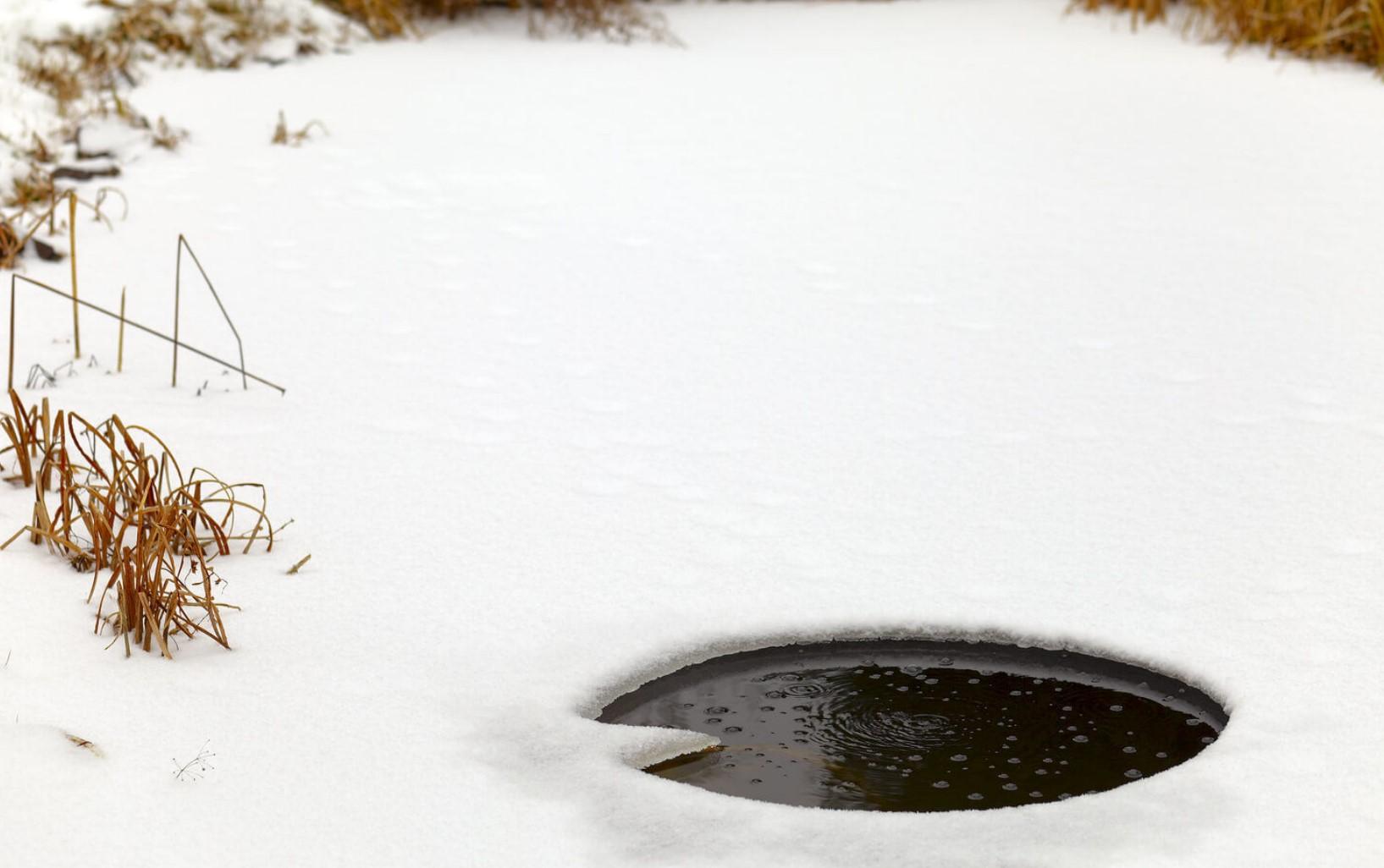 В зимний период, когда водоемы покрываются слоем льда, доступ кислорода в воду практически прекращается и все рыбы, в том числе и вьюн, страдают от этого. Поэтому, собрать вьюна возле лунки не составит большого труда. Сначала пробивается лунка несколько меньшего диаметра, чем сама ловушка и покрывается сухой травой, корой с деревьев и снегом, чтобы она не смогла замерзнуть.