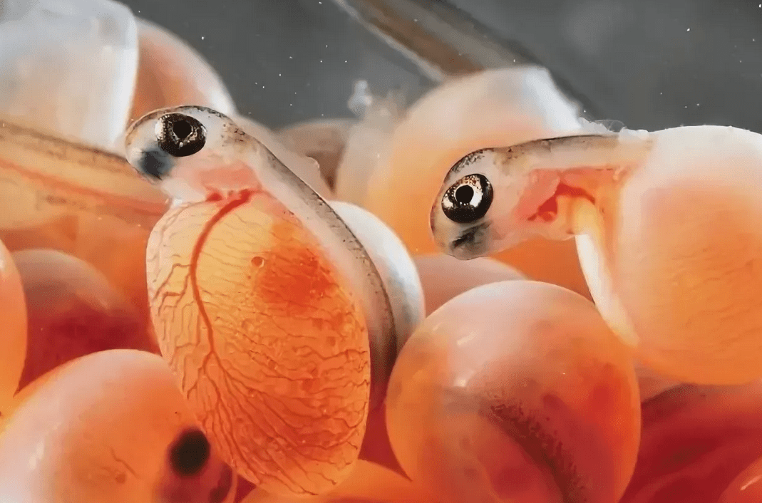 Икра форели размером от 4 до 5 мм, преимущественно желтоватого либо красноватого оттенка. Данная икра использовалась в основном для многократных эмбриологических исследований.