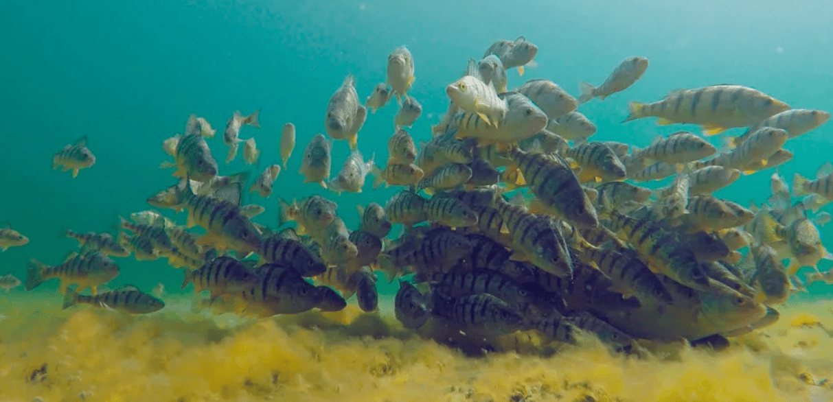 Несмотря на то, что окунь относится к агрессивной породе рыб, нерест протекает размеренно и неагрессивно.