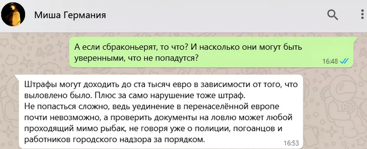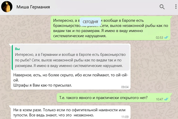 Ниже вы видите наш диалог с Мишей. Я думаю, что вы уже поняли к чему клоню и понимаете ситуацию в европах так, что браконьерствовать там попросту… невыгодно! Банально невыгодно!!!
