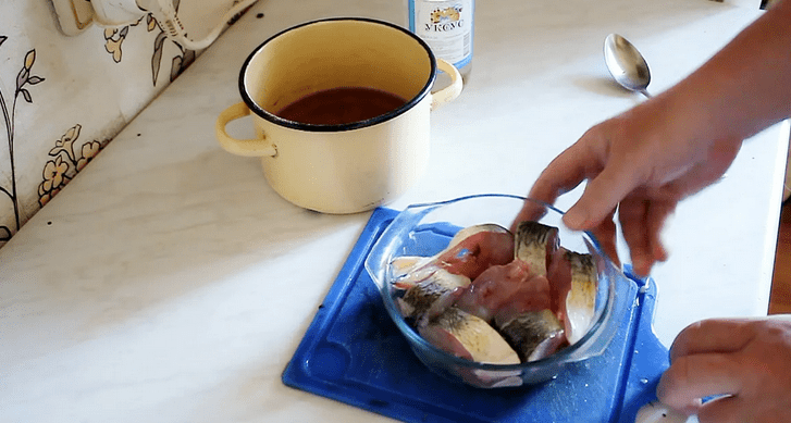 Приготовленной смесью обильно смазываем мясо рыбы. Боковой стороной смазанную рыбу нужно положить в емкость, разместив сверху груз. В таком виде оставляем на два дня в холодильнике. По истечении срока жереха можно употреблять в пищу. Полученное мясо рыбы очень напоминает лососину. Такая смесь также подойдет для засолки щуки, язя и голавля.