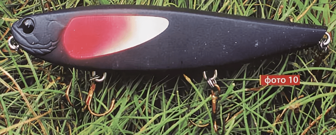 Такая начинка позволяет приманке при длине 9 см и массе 11 г иметь отличные полетные характеристики и высокую чувствительность к самым легоньким рывочкам. Снизу, в носовой части приманки, имеется ложбинка с крепежным колечком. Эта особенность конструкции позволяет уокеру при проводке булькать подобно попперу.