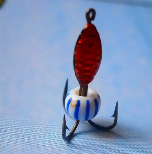 Мормышка «чертик» представляет собой вытянутую каплю с тремя крючками, которую к леске привязывают вертикально. Успешно ловить на «чертика», особенно в период высокой активности рыбы (по первому и последнему льду) можно практически повсеместно.