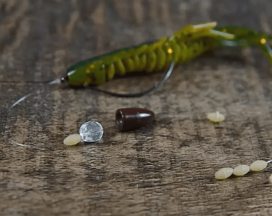 В качестве приманки применяют пластиковые черви. Но некоторые рыбаки используют съедобную резину. Потому что в этом случае рыба подольше её «жуёт», а не выплёвывает сразу же. В первую очередь используют грузило. Наши рыбаки монтируют его пулевидной и грузилом в виде «оливки». Изменение формы на свойства оснастки не повлияло. Грузило можно использовать из латуни, свинца, вольфрама: