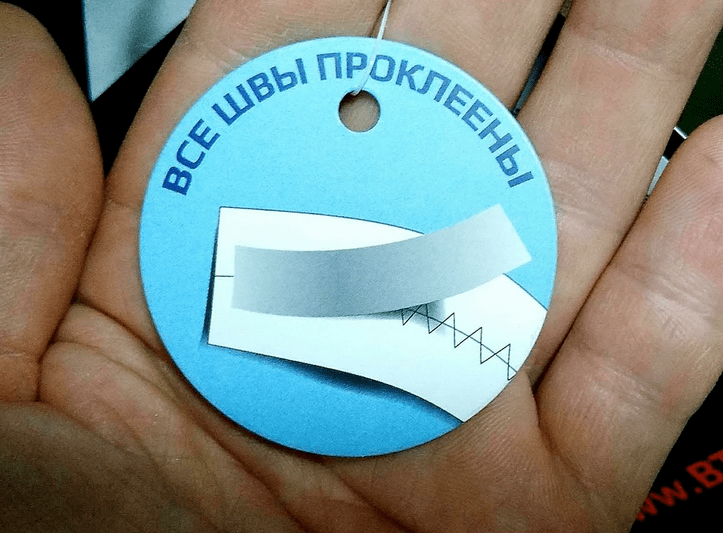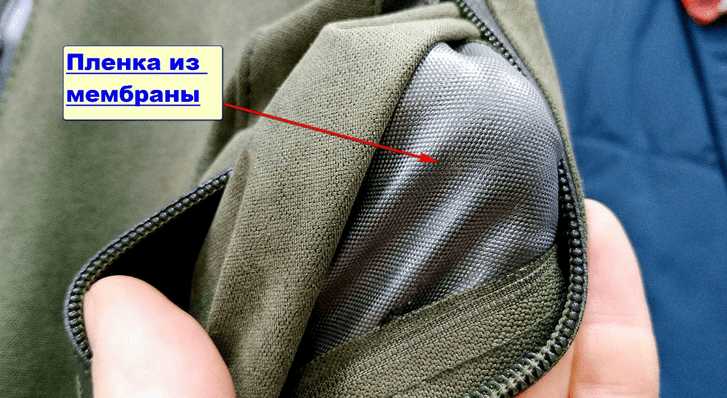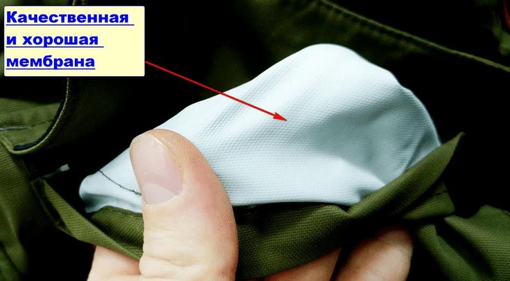Если вы видите с обратной стороны ткани что-то похожее пленочку наподобие полиэтилена, прозрачную наклейку на ткань — то это дешевая китайская мембрана. Из личного опыта могу сказать, что такая мембрана как правило служит недолго.
