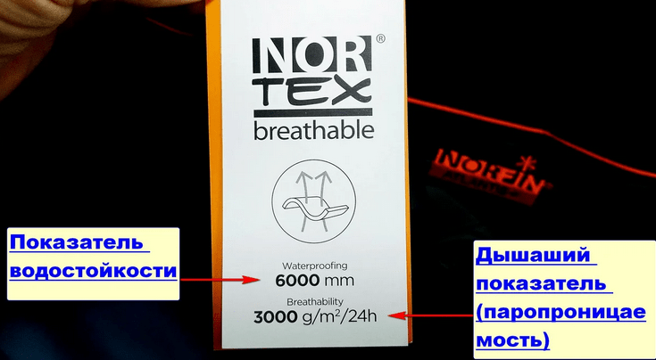 Как я уже сказал одежда из мембранных тканей имеет характеристику водостойкость и паропроницаемость. Эти характеристики обозначают сколько воды ткань держит снаружи защищая рыболова от дождей и даже ливней. А второй параметр, показывает как хорошо ткань выводит влагу наружу когда Рыболов вспотел, это необходимо чтобы он не стал сырым от пота и не замёрз.