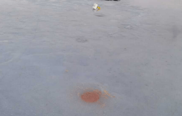 Оставив поплавочную удочку, я продолжил облавливать соседние лунки. Примерно через двадцать минут из под плавающей на поверхности лунки прикормки вынырнул притопленный поплавок, а кивок разогнулся. Еще один карасик пожаловал в пакет с рыбой.