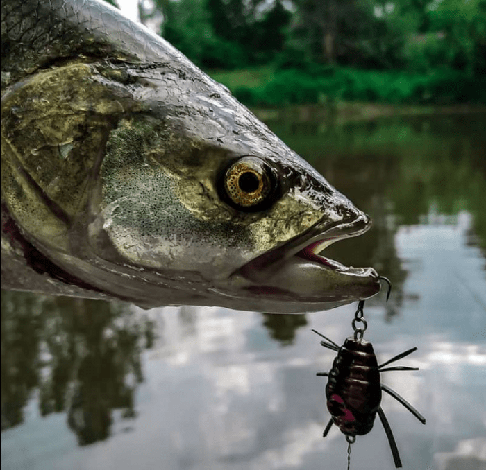 Если вам под силу исполнить роль высокообразованного дирижера, то получается имитация поведения настоящего жука в воде. Правильная проводка складывается из многих нюансов: какую точку вы заняли, располагаясь на берегу относительно течения, не нашумели ли перед забросом, скорость и направление ветра…
