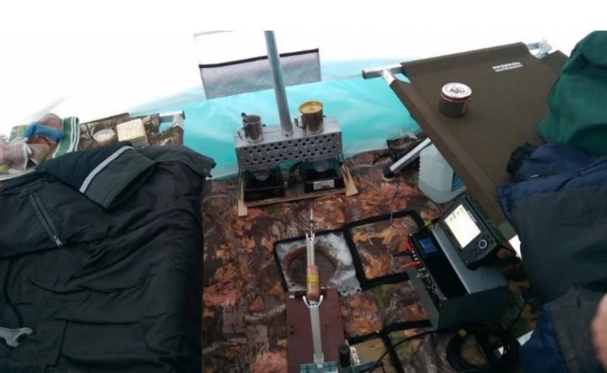 Ночью зимой достаточно холодно и поэтому, для обогрева палатки рыбаки обычно пользуются небольшим примусом, который предназначен для туристов. При отсутствии примуса, воздух в палатке можно нагреть при помощи небольшой металлической печки, работающей на сухом горючем. Чтобы не допустить таяния льда под нашей печкой, нужно такую печку ставить на досточку или текстолит.