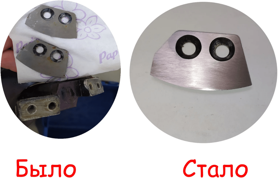 Во-первых, надо сразу сказать, что ножи в домашних условиях правят только в одной плоскости. Со стороны, не имеющей угла заточки. Если пытаться править плоскость угла заточки, то шанс испортить ножи очень велик. Ведь вручную, невозможно выдержать необходимый угол. А как быть, если вообще ножи полукруглые? Вот поэтому только с одной стороны, с той в которой прячутся шляпки винтов.