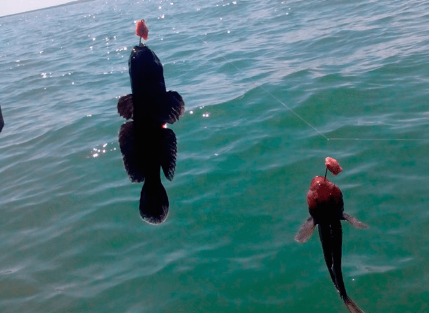 При этом мясо следует периодически заменять, ибо соленая морская вода быстро обесцвечивает мясо и лишает его соблазнительного для бычков запаха.