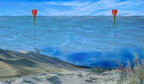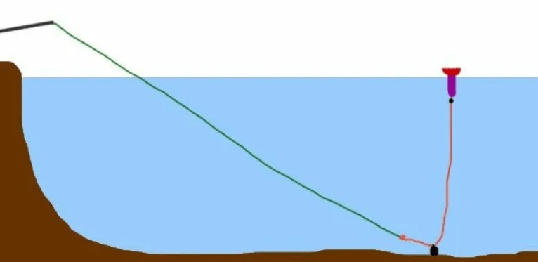 Удочка с поплавком-маркером используется опытными рыбаками для изучения рельефа водоема в предполагаемом месте ловли.