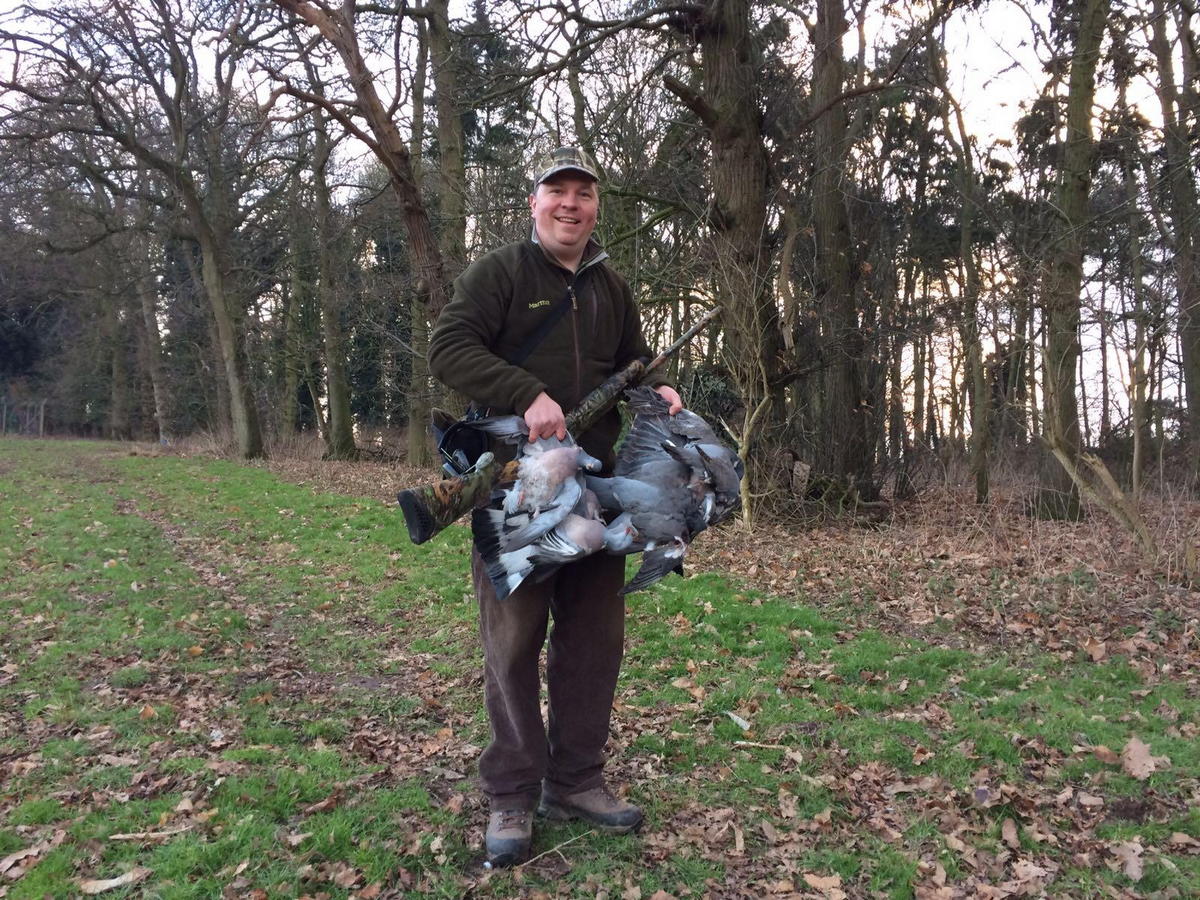 Рассматривая нежную окраску трофея, чуть было не прозевал голубиную стайку из пяти птиц, летящую на поле. После дуплета еще один голубь становится моим трофеем.