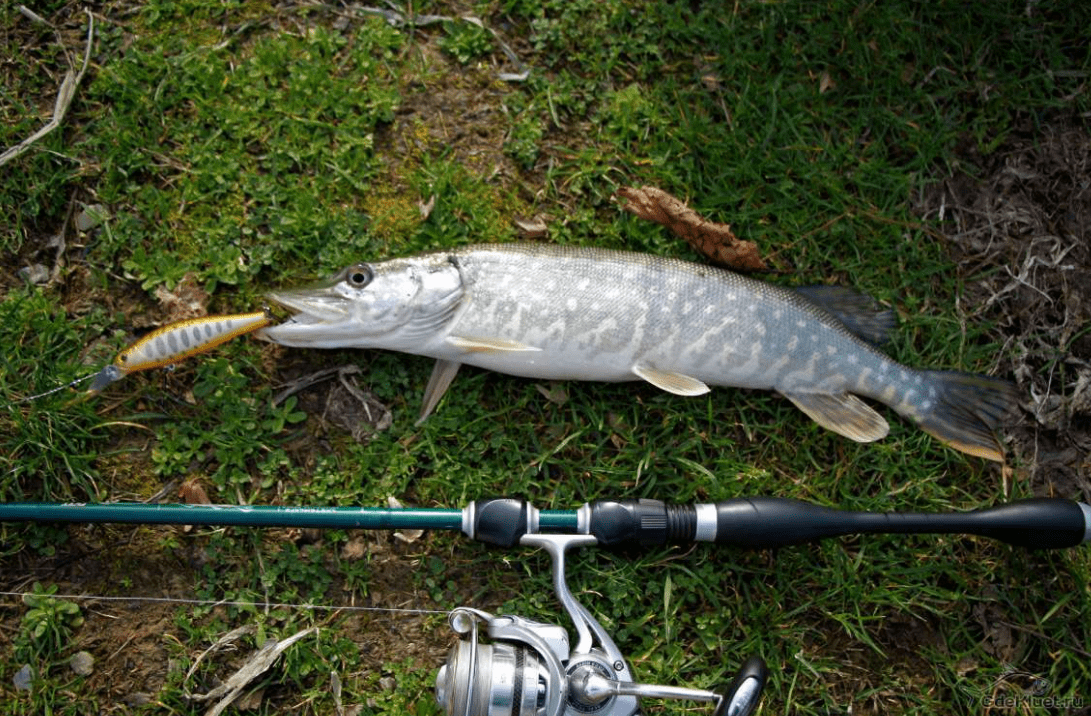 Но ещё парочку щучек удалось поймать только в районе 15 часов. Вновь сработал воблер Itumo Fatty Minnow 90SP. Эта приманочка у меня не так давно, воды практически не видела, разловил её впервые.