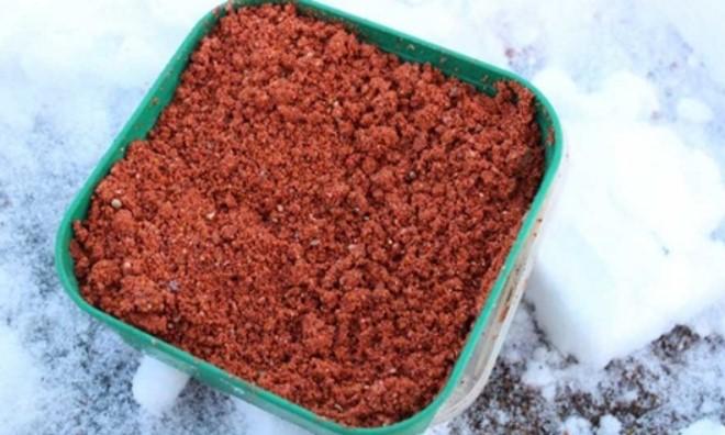 В качестве прикормки часто используются качественные покупные зимние смеси. В чистом виде они не очень эффективны, поэтому в них нужно добавить некоторое количество кормового мотыля, который выступает и в роли насадки. Это объясняется тем, что зимой лещ предпочитает белковую пищу.