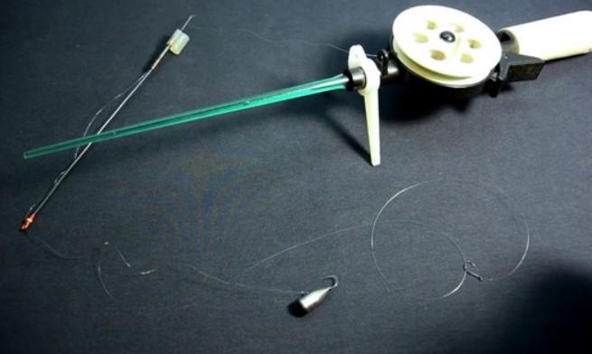 Донные удочки тоже используются для ночной ловли со льда. К основной леске привязывается грузило (чем сильнее течение, тем тяжелее оно должно быть) и добавляется один или два поводка с крючками.