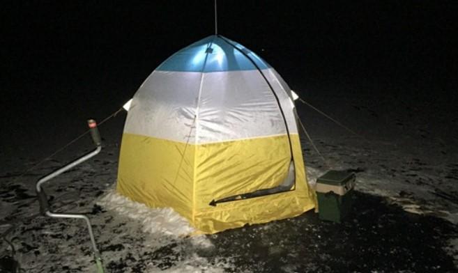 Не стоит забывать и про освещение палатки. Фонарь лучше подвесить вверху и посередине. Рыболовные принадлежности – приманки, наживку, багор и т.д. – нужно разместить рядом с лунками.