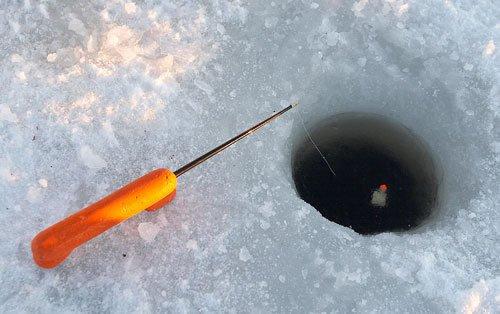 - Каждому любителю подледной ловли необходимо иметь специальные приспособления для того, чтобы зацепиться за край ледяного покрытия. Это обычные шило подобные инструменты с ручками, которые привязываются к длинной веревке. Приспособление пропускается сквозь рукава верхней одежды.